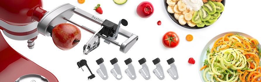Spiralizer Attachment Compatible with KitchenAid Stand Mixer, Comes with Peel, Core and Slice, Not KitchenAid Brand Spiralizer Attachment(7 Blades)